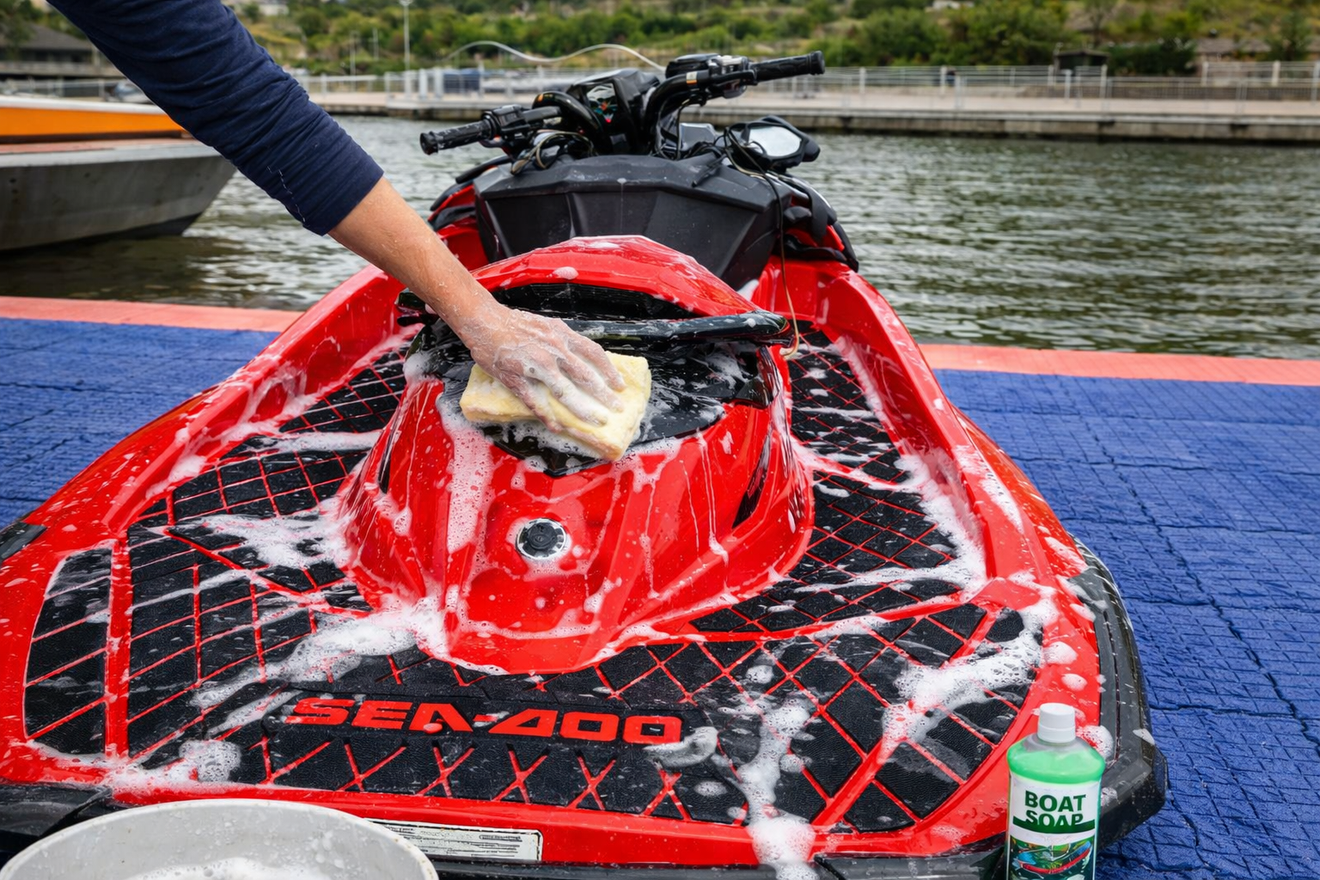 Our jet ski traction mats are made from marine-grade EVA foam, designed to provide excellent grip, comfort, and durability in wet conditions.